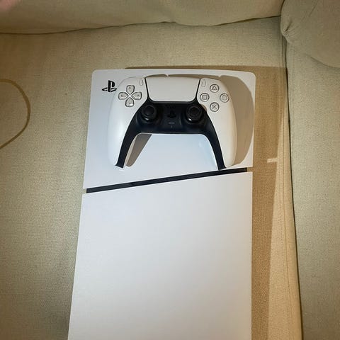 Myynnissä erinomaisessa kunnossa oleva Ps5 Slim Digital pelikonsoli, alkuperäinen ohjain ja tarvittavat johdot.