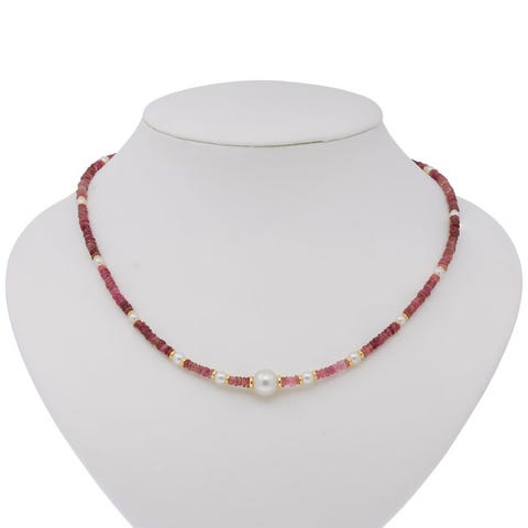 Kaulakoru - 18 kt. Keltakulta Helmi - Akoya-helmi/malakiitti