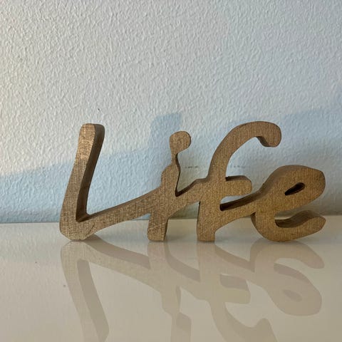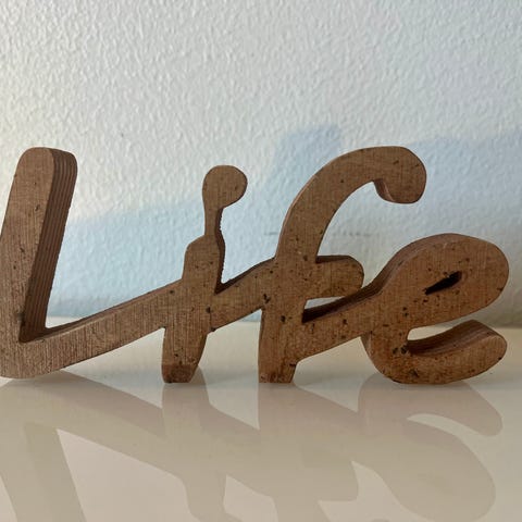 Lepästä valmistettu sisustusteksti, jossa erilliset sanat ”GOOD”, ”VIBES” ja ”ONLY”. Kolmiulotteiset kirjaimet on leikattu lepästä ja ne sopivat esimerkiksi pöydälle tai hyllylle asetettavaksi. Pituus noin 14-20cm ja korkeus noin 6cm. Soveltuu koristeeksi kotiin tai työtilaan. Käsintehty, uusi tuote.