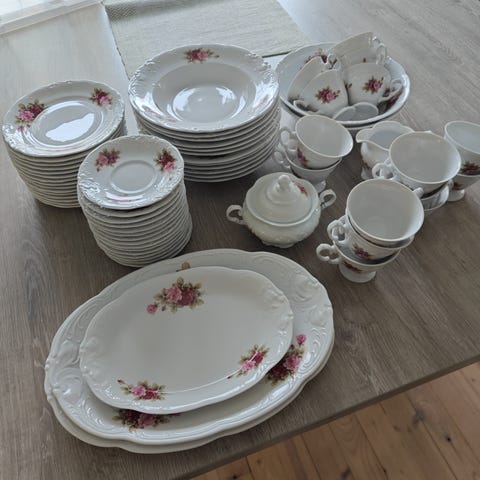 Hakusanat: aterimet, posliini, astiat, kaadin, lautaset, puola, kultareunus, Valmistaja, wawel, lautanen, klassinen tyyli, kahvi, kupit, kuppi, muki, aterin, tarjoilulautanen