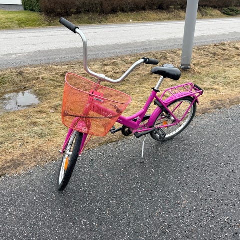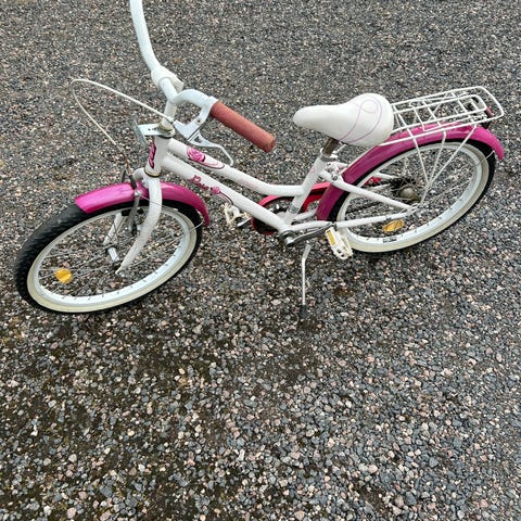 Nakamura lastenpyörä 20" renkailla. Runkokorkeus 32 cm. Väritys on pinkki valkoisilla kukkakuvioilla. Vaihteeton. Mukana erillinen etukori. Ostettu uutena keväällä 2024.