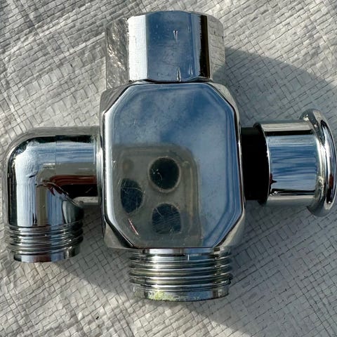Messingistä valmistettu venttiilisarja, jossa näkyvät osat (kahva ja peitelautanen) ovat kromattuja. Venttiileissä on pitkä kierteinen varsi, joka mahdollistaa kiinnityksen paksumpien tasojen läpi. Alaosassa on T-haara tai kulmaliitin veden kytkentää varten.
