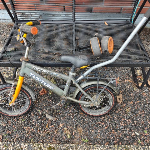 Käytetty mutta hyvässä kunnossa. Apupyörät tulee mukaan haluttaessa