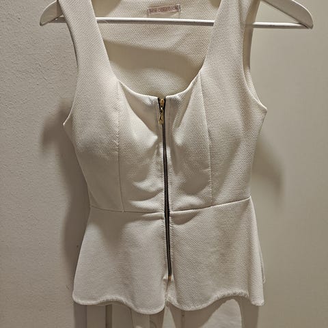 S kokoinen valkoinen 157:n toppi. Edessä on nauhakiinnitys jolla topin etuosaa saa kiristettyä.