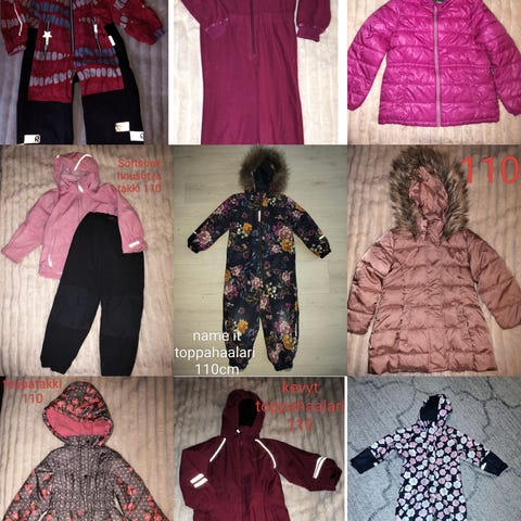 Erilaiset ulkovaatteet 110-116cm. Kunto, koko ja tiedot löydät kuvan tekstinä. Voin lähettää.