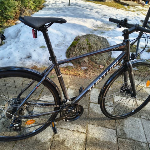 Haluaisitko pyörän, jolla voit poiketa asvalttiteiltä myös maastoreiteille tai hiekkateille? Tunturi X-Cross on oikea valinta, koska se on varustettu joustohaarukalla. Se vaimentaa maaston epätasaisuudet ja tuo lisää ajomukavuutta. Runko on valmistettu alumiinista joka takaa kestävyyttä ja keveyttä – ajomukavuutta lisäävät Velo kraton kädensijat. Vaihteita pyörästä löytyy 9. Tehokkaat Shimano MT-200 hydrauliset levyjarrut toimivat säällä kuin säällä. Etuhaarukka: Suntour NEX-E25 HLO 63mm. Jarrujen tyyppi - lisätieto: RT10 160mm. Jarrujen tyyppi: Levyjarrut. Kampisarja: Shimano FC-U4000 40T. Lisävarusteet: Seisontatuki, Soittokello. Polkimet mukana: Kyllä. Rataspakka: Shimano CS-LG400 11-41T. Rengaskoko tuumaa: 28. Renkaat: Schwalbe G-One Bite 40-622. Runko: Aluminirunko. Runkokorkeus tuuma tai cm: 44, 51, 57. Takavaihtaja: Shimano RD-U4000 9. Vaihdevivut: Shimano SL-U4010 Cues 9. Vaihteet: 9. Vanteet: X430 disc, alumiini, kaksoisseinämä.