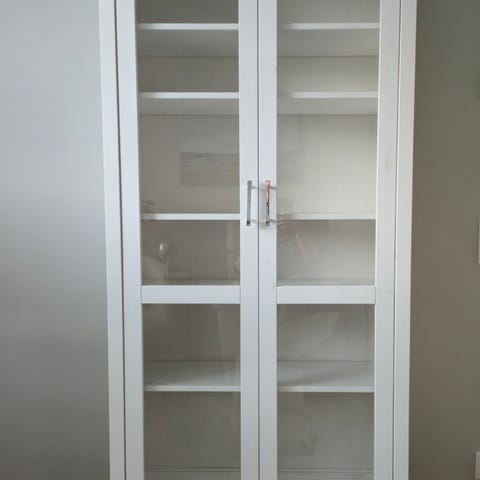 Ikea Hemnes merkin vitriinikaappi. Valkoinen. Tosi siistissä kunnossa. Kuvissa näkyy yksi pieni ”kolhu” ja yksi oksan paikka tullut ajansaatossa esiin.