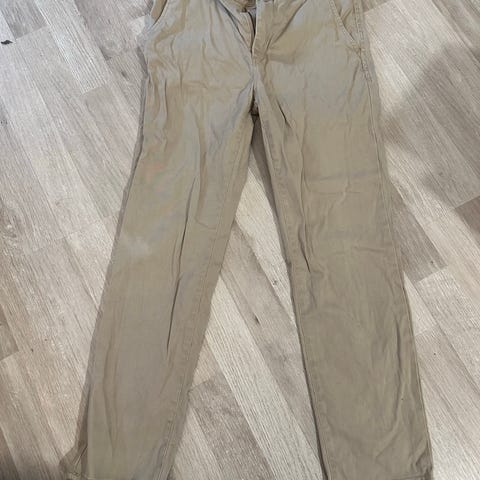 C&A-merkkiset kangashousut, koko 158 cm/13 v. Toisessa kuvassa värihaalistuma, joka on toisessa lahkeessa. Muuta vikaa en ole löytänyt. Materiaali polyesteri/ puuvillasekoitus. Kissatalous, nouto Viikki.