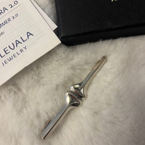 Kalevala korun (alkuper Kaunis Korun) hopeiset kalvosinnapit ja solmioneula alkuper rasiassaan. Ala-Tikkurila. Sis pk.