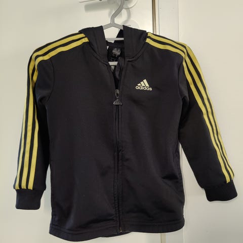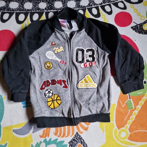 Adidas lasten hupparitakki, koko 98 cm. Väri harmaa, sisäpuolella tummempi vuori hupussa. Edessä vetoketju ja kaksi etutaskua.oikein hyvä kunto