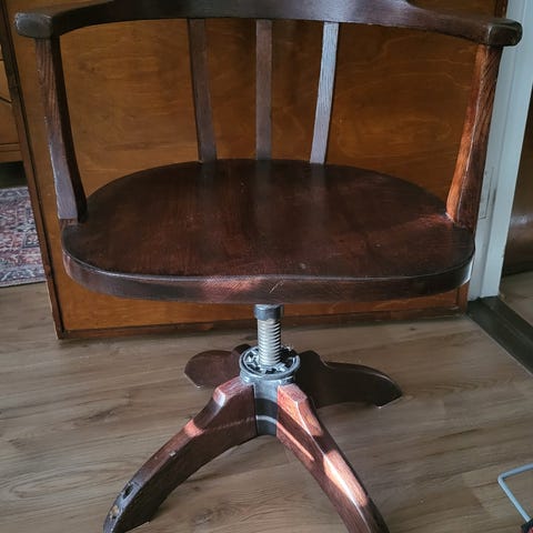 Komea vanhan ajan työtuoli myytävänä. Valmistajan Boman, kyltti tallessa. Istuin hevosen jouhta. Selkänojaa aikanaan korjattu. Runko tukeva. Normaalia patinaa. Ei hajuja.