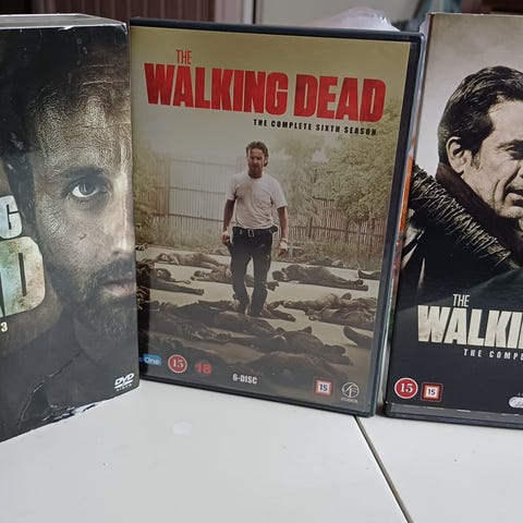 The Walking Dead kaudet 1–3 DVD-boksi. Pakkaus sisältää televisiosarjan The Walking Dead ensimmäisen, toisen ja kolmannen tuotantokauden usealla DVD-levyllä. Kansi- ja levytiedot englanniksi, ikärajasuositus 16. Sopii DVD-soittimelle, joka tukee julkaisun aluekoodausta ja formaattia.