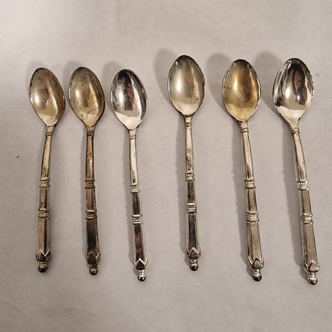 Hopeinen teelusikkasetti, jossa on 6 lusikkaa. Lusikat on pakattu alkuperäiseen koteloon, jossa on kangasvuori. Sopii esimerkiksi kahvi- ja teehetkiin tai jälkiruokien tarjoiluun.