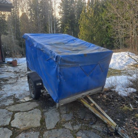 Muuli 1250xi. Hyväkuntoinen, aito suomalainen sulavalinjainen kuomukärry. Ei ole ollut paljoa käytössä, käytetty pääosin renkaiden varastointiin. Mitat on 2,65m x 1,25m.