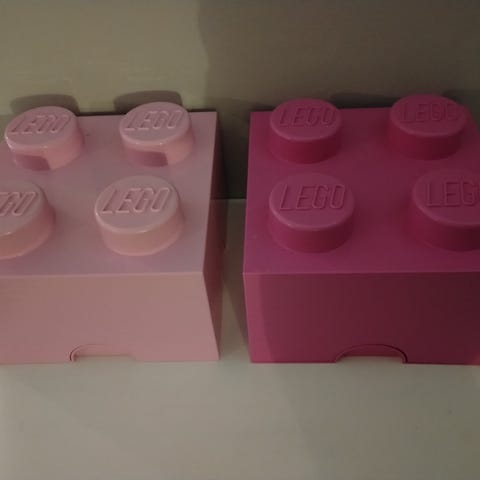 LEGO säilytyslaatikko, jossa neljä nupin muotoista korotusta kannessa. Väriltään turkoosinsininen. Laatikon mitat pituus ja leveys n. 25 cm ja korkeus noin 18 cm.