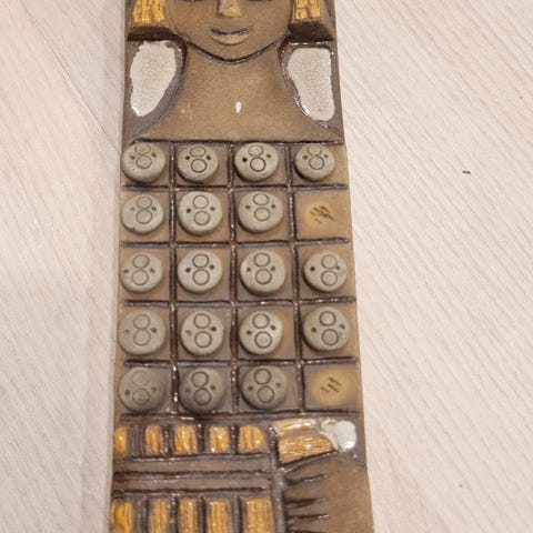 Pieni Heljä Liukko-Sundströmin kaakelitaulu. Purjevene aalloilla -aihe.