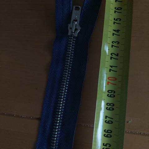 Metallihampainen tummansininen vetoketju, pituus 70 cm. Sopii esimerkiksi vaatteisiin, laukkujen tai pussukoiden sulkemiseen sekä erilaisiin ompelu- ja korjaustöihin.