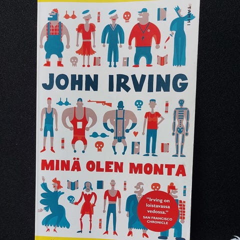 John Irving: Minä olen monta. Kovakantinen sidottu kirja kansipaperein. Uudenveroinen, kansipaperissa hieman kulumaa.