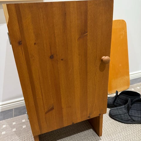 Myynnissä vanha vintage teak-kaappi messinkivetimillä (arviolta 60-70-luvulta). Pinnassa naarmua, en ole yrittänyt huoltaa. Ostin tämän itse Torin kautta, mutta ei tullutkaan käyttöön. Ollut talven ajan säilössä lämpimässä autotallissa.