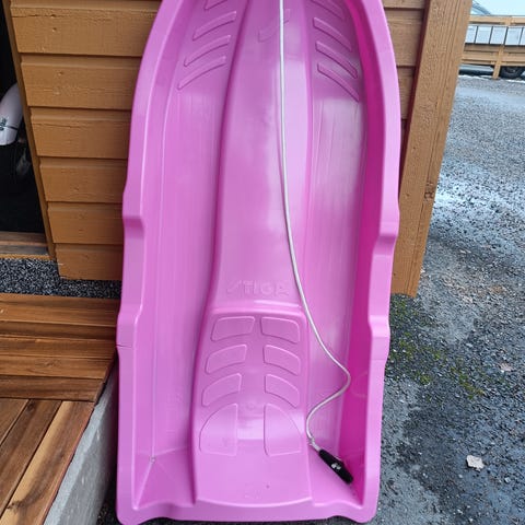Annetaan pulkka ja lasten pitkävartinen lapio. Nouto Pateniemestä.