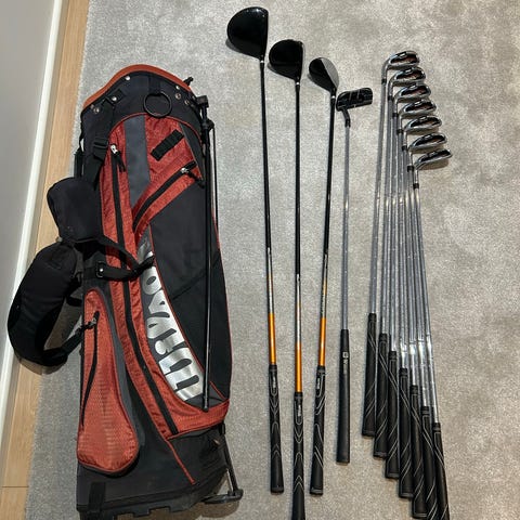Ok aloitusetti vasuri miehelle,naiselle, raudat, 6,7,8,9,P,S, putteri, draiveri, puu 3, raudat wilson DI9, bägi