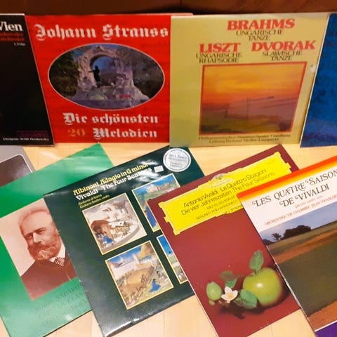 LP-levyjä Pavarotti Vivaldi Mozart ja muu klassinen