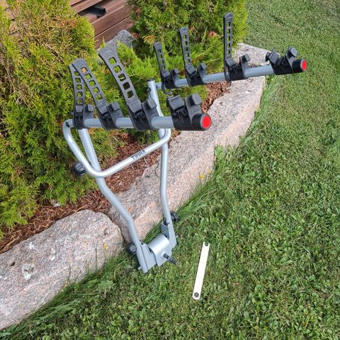 Thule hang on 3 polkupyöräteline vetokoukkuun. Teline on tarkoitettu asennettavaksi auton vetokoukkuun, ja siinä on paikat 3:lle polkupyörälle. Pyörät kiinnitetään runkoa tukevilla varsilla ja hihnoilla. Rakenne on metallinen ja väriltään pääosin harmaa mustin muoviosin. Soveltuu polkupyörien kuljettamiseen autolla.