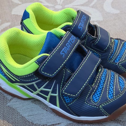 Lasten Starter merkkiset sisäpelikengät kokoa 28. Tarrakiinnityksellä, molemmat tarrat toimivat hyvin kummassakin kengässä. Pohjissa ei juurikaan kulumisen merkkejä. Nouto Kellon Kiviniemestä.