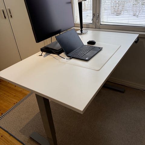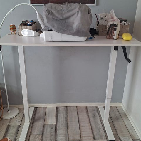 Manuaalisesti toimiva hissi työpöytä, tason korkeus säädettävissä käyttäjän mukaan