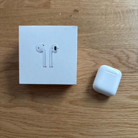 Apple AirPods langattomat nappikuulokkeet valkoisena. Mukana latauskotelo ja myyntipakkauksen osat kuvien mukaisesti. Kuulokkeet ovat Bluetooth-yhteensopivat Applen laitteiden kanssa ja toimivat myös muiden yhteensopivien laitteiden kanssa. Latauskotelo mahdollistaa kuulokkeiden lataamisen liikkeellä ollessa. Valkoinen muovinen kotelo ja kuulokkeet, varustettu Applen vakio-ominaisuuksilla kuten automaattinen yhdistyminen ja kosketusohjaus (mallista riippuen). TUU TARJOO <3