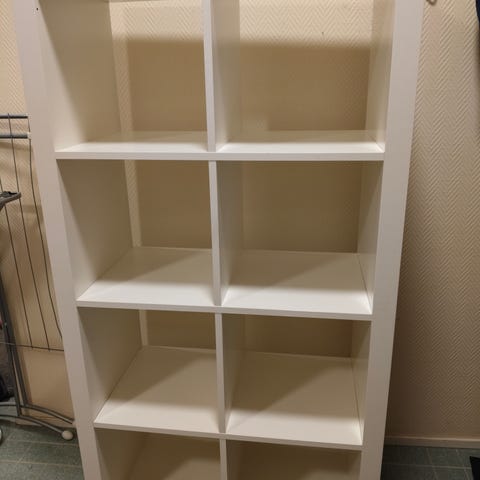 Myydään Ikean valkoinen Kallax hylly 2x4. Ostettu käytettynä, ja edellinen omistaja pitänyt kyljellään jonka takia sivussa on huopatassut. En ole yrittänyt poistaa. Laatikot ei kuulu kauppaan.