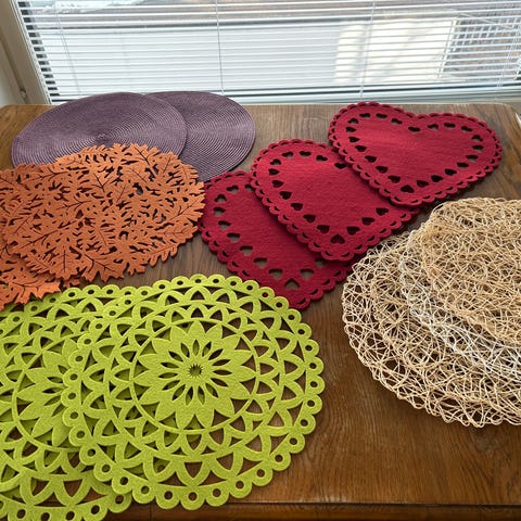 Materiaali varmaankin vesihyasinttia tms. Kunto ihan hyvä, vähän kuluneisuutta. Kissatalous.