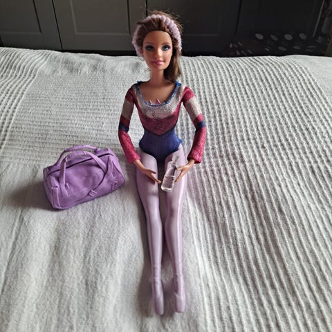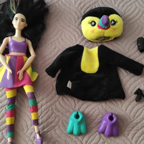Lautailija barbie. Käytetty kunto. Barbia on on stailattu ja jalkaakin jyrsitty. Kuitenkin oikein toimiva vielä. Mukana kaikenlaista oheis tavaraa.