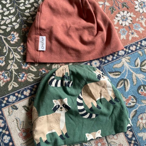 Vaaleanpunainen pipo. Käytetty samaan aikaan 86-92cm vaatteiden kanssa.
