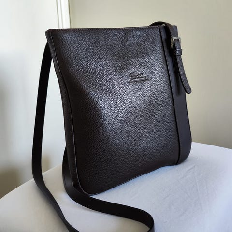 Longchamp olkalaukku. Materiaalina on kangas, edessä on painonapeilla suljettava tasku nahkaläpällä ja ylhäällä vetoketjullinen päätasku. Laukussa on säädettävä olkahihna. Väri on musta ja metalliosat hopeansävyiset. Kunto siisti ja moitteeton. Mitat 30x22x5.