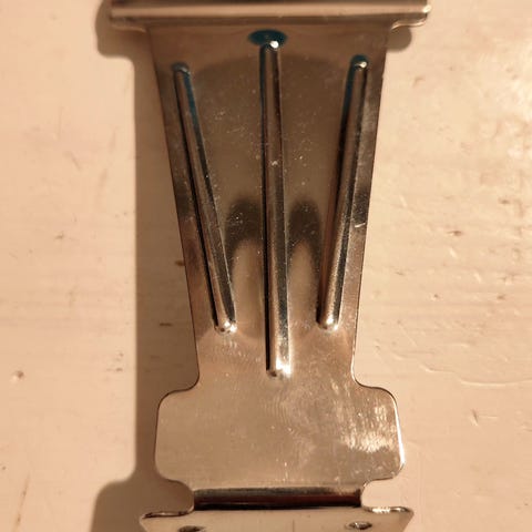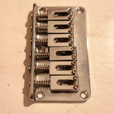 2-point tremolosysteemiin, esim. strato. Alkuperä tuntematon. Mystinen stringthrough ja top load optiot. Aluslevy näköjään ruuveilla irrotettava.