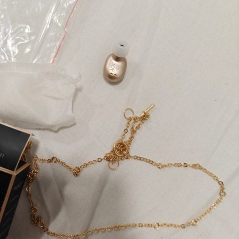 Joy Koru -kuulokkeet, vaaleanpunaiset. Pari kertaa kokeiltu, toimivat moitteettomasti. Puhdistettu ja desinfioitu. Suunniteltu pysymään pienissä korvissa, ja pitää kyllä todellakin paikkansa.