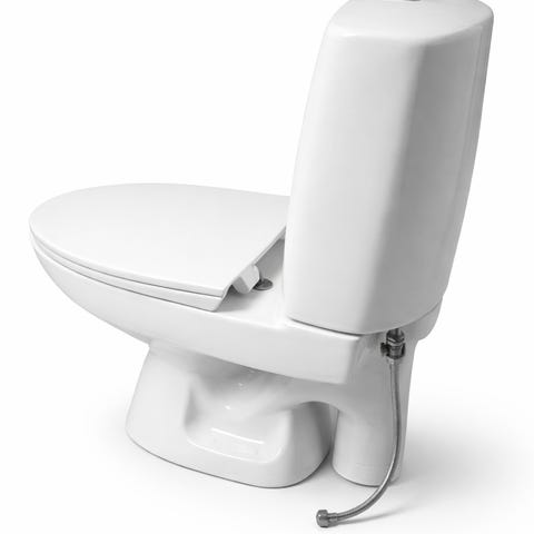 Valkoinen lattiamallinen wc-istuin, jossa erillinen huuhtelusäiliö ja vihreä istuinkansi. Soveltuu asennettavaksi sisätiloihin viemäröityyn wc-tilaan. Kuvasta päätellen perinteinen malli, jossa takana ylhäällä sijaitseva vesisäiliö ja alhaalta lattiaan liitettävä poistoputki.