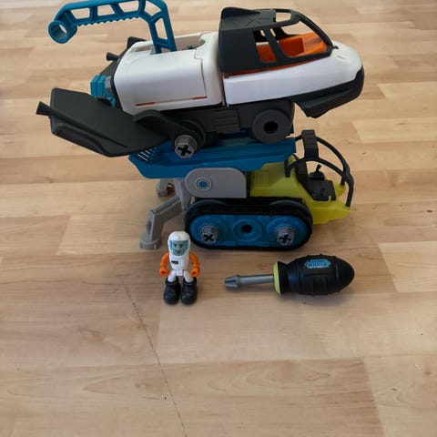 Silverlit avaruusrakaketti, jossa hieno savutehoste ja äänet. Ajoneuvossa metallinpaljastin, johon syttyy valo ja joka piippaa, kun se löytää metallia.