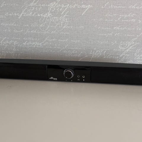 Mukaan itse soundbar, subwoofer, virtajohto ja aux johto.