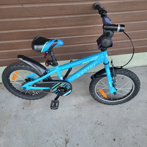 Kevyt alumiinirunko, v-jarrut (ei jalkajarruja), yksi vaihteinen, rengas koko 16".