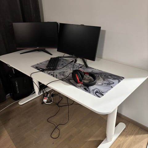 Yleisilme siisti, muutamia käytönjälkiä kuten yksi lommo levyssä ja pari pientä kosteudesta tullutta läikkää, näkyvät kuvissa. Myydään koska ei mahdu nykyisellä huonejaolla kunnolla asuntoon. Voi ehdottaa myös vaihtoa pienempään pöytään.
