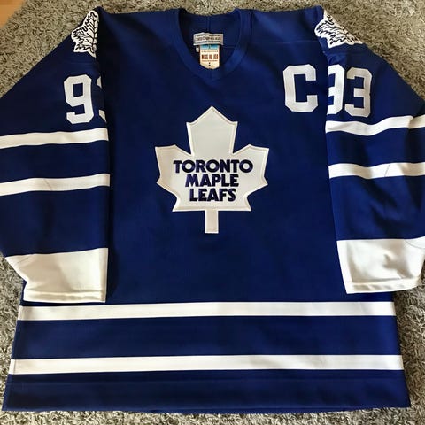 Legendaarinen, HHOF pelaaja Doug Gilmourin aito, pro pelipaita suoraan 90-luvulta. Paidassa ikoninen Maple Leafs Garden patch rinnassa!
