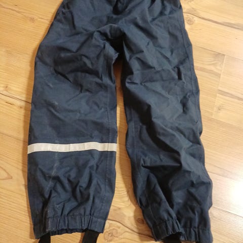 Mustat välikausihousut. Kokomerkintä 120, mutta vadtaa 116 kokoa Reimalla. Ei mainintaa kuorista, mutta jotain vettähylkivää materiaalia. Hyvässä kunnossa, ei moitteita