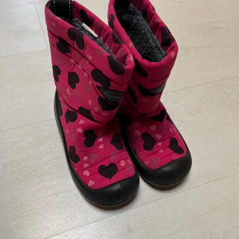 Varren yläosa on pinkkiä tekstiilimateriaalia ja alaosa mustaa kumimaista materiaalia, joka suojaa kosteudelta ja kulutukselta. Kengissä on paksu pohja ja lämmin vuori kylmiin olosuhteisiin. Sopivat arkeen ja ulkoiluun talvikeleillä.