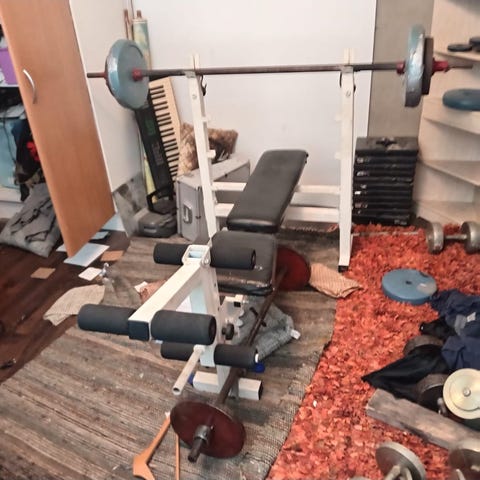 Levytankosarja, jossa suora tanko ja molemmissa päissä levypainot. Sopii kotitreeniin esimerkiksi perusvoimaliikkeisiin kuten kyykkyihin, penkkipunnerrukseen ja hauiskääntöihin. Materiaali vaikuttaa olevan metallia, levypainot todennäköisesti pinnoitettuja. Tarkemmat mitat ja kokonaispaino eivät käy ilmi kuvasta.