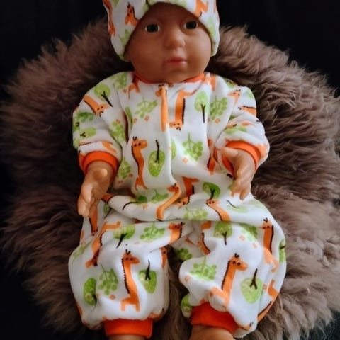 Uudet trikoo-vaatteet n.40cm nukelle. Hinta 10€.