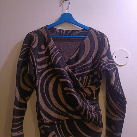 Koneessa kutistettu merinovillainen kaulustunika, pituudesta lähti ~ 30 cm ja muutenkin aika napakka. Olen pari kertaa pitänyt alusvillastona", ok XXS kokoiselle. Ehkä tuunaamalla kiva liivi?