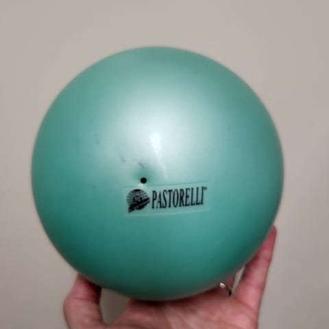 Pastorelli voimistelupallo ja säilytyspussi. Pallo on pinkki, glitterpintainen voimistelupallo, joka soveltuu rytmiseen voimisteluun tai muuhun voimisteluharjoitteluun. Mukana tulee Pastorelli-merkkinen vaaleanpunainen nyörikiristettävä säilytyspussi pallon kuljettamista ja säilytystä varten. Pallo tarvitsee vain ilmaa. Pallon halkaisija on 185 mm eli sopii kilpakäyttöön.