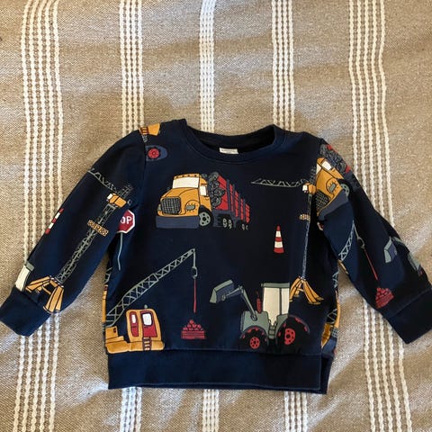 Lindex pitkähihainen paita. Koko 92. Vihreä puuvillainen paita, jossa nosturi-aiheinen kuvitus edessä.